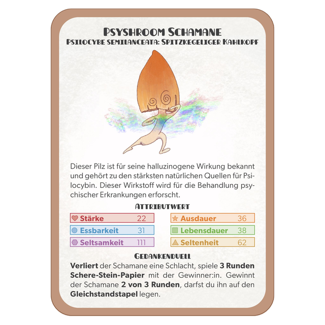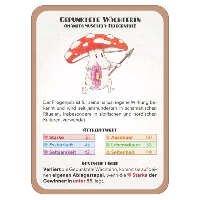 Inspired by classic Quartett-style gameplay, Mushroom Mayhem adds a twist: every mushroom has a special ability that can unexpectedly turn the game around.